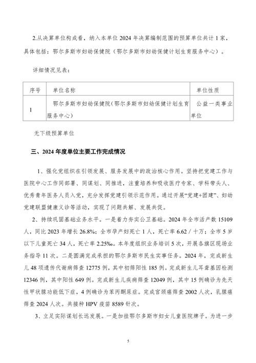 2024年度内蒙古自治区鄂尔多斯市妇幼保健院(鄂尔多斯市妇幼保健计划生育服务中心)公开报告