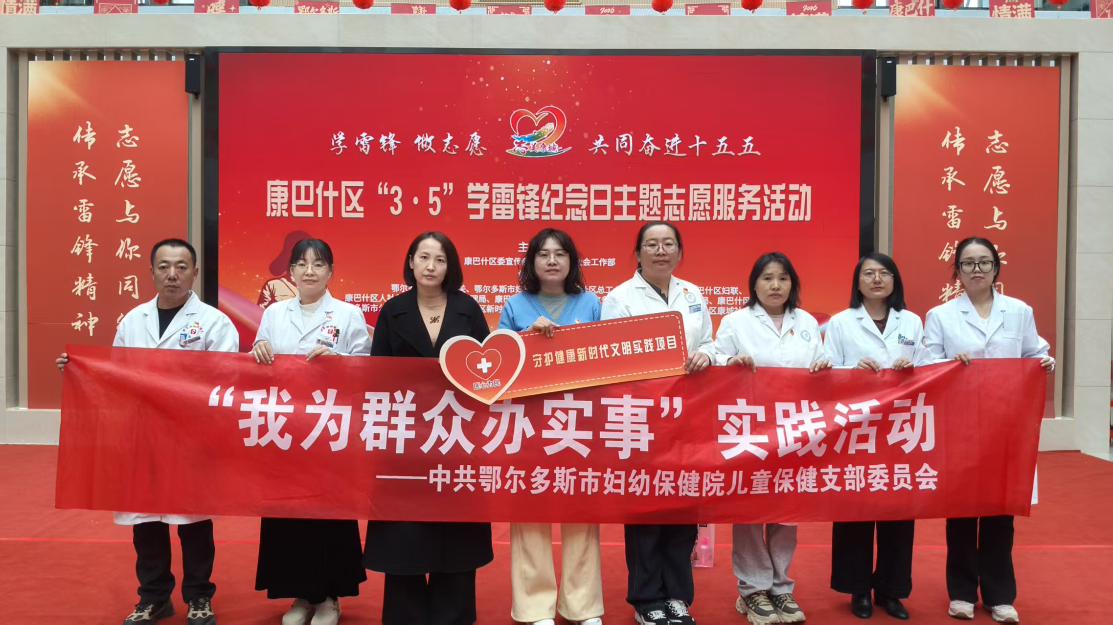 为深入学习贯彻党的二十届四中全会精神,学习贯彻习近平总书记对深入开展学雷锋活动的重要指示精神,大力弘扬和传承雷锋精神,在“3.5”学雷锋纪念日来临之际,鄂尔多斯市妇幼保健院党委积极组织院党员、志愿者、医护骨干,参与由康巴什区委宣传部、康巴什区委社会工作部联合主办的“3.5”学雷锋纪念日主题志愿服务活动,积极主动认领2026年度“医心为民”志愿服务项目,以实际行动传递温暖、守护健康,彰显妇幼人的责任与担当。