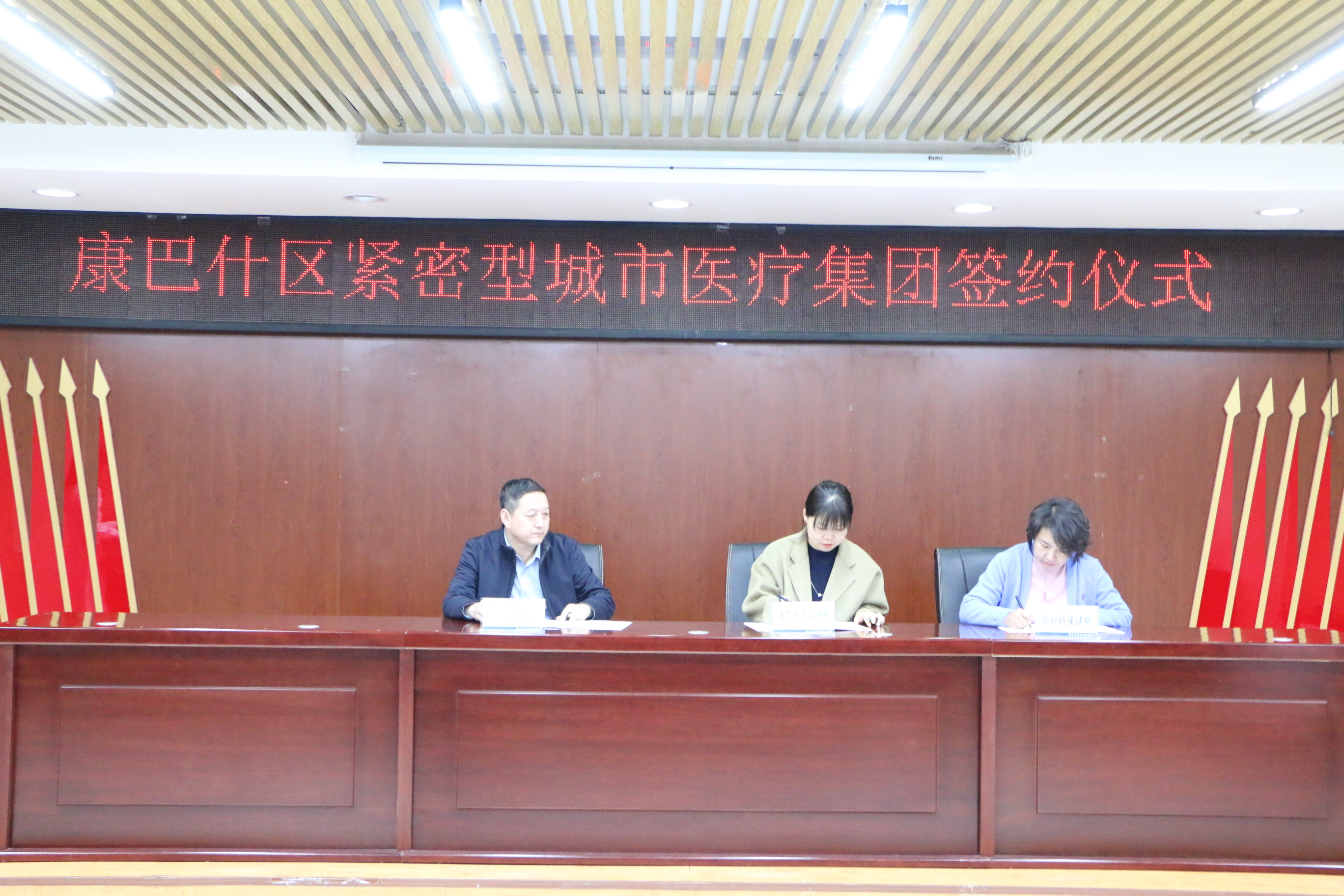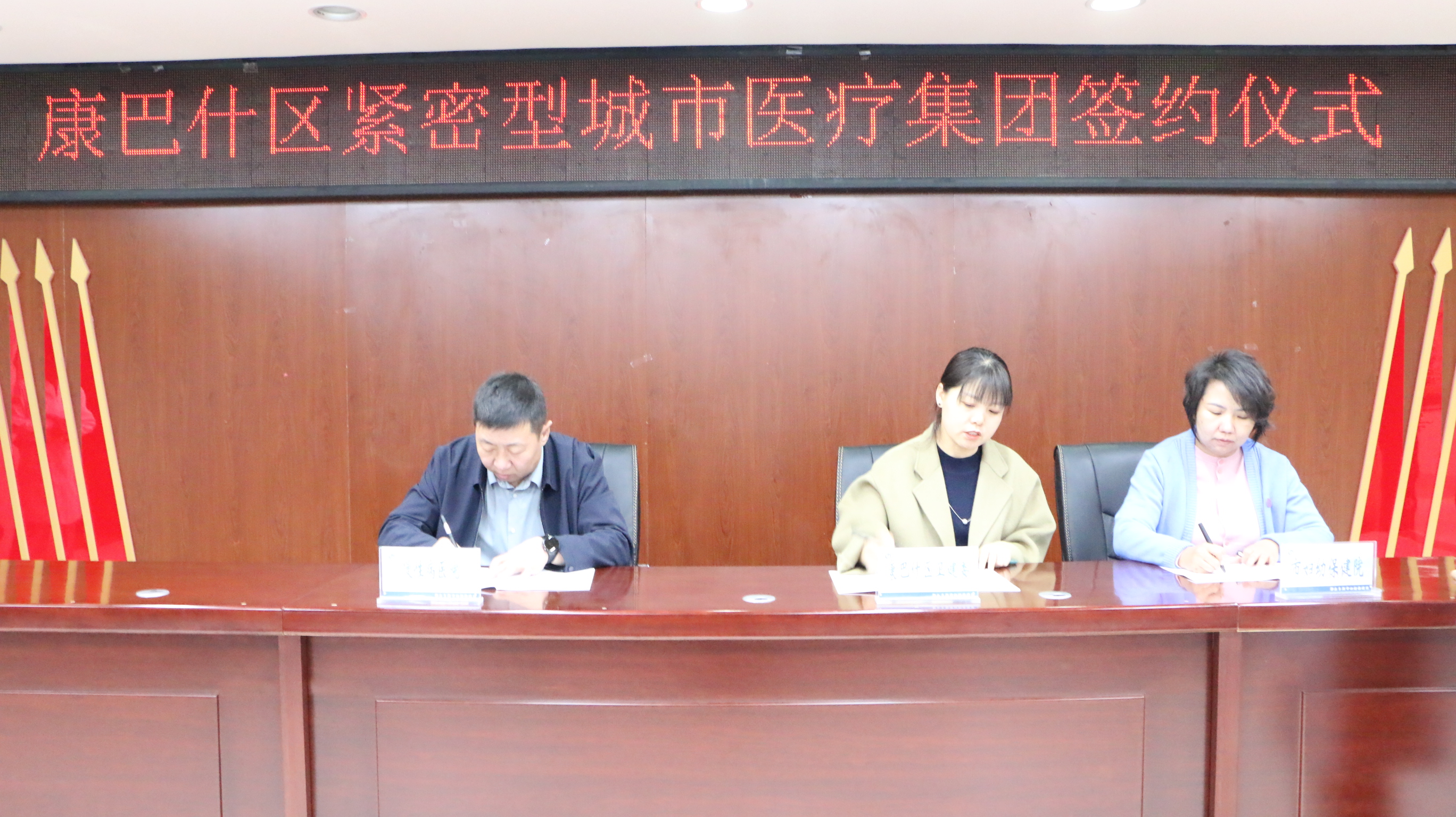 签约仪式上,我院与康巴什区青春山街道神华康城社区卫生服务中心、康新街道卫生服务中心、慢性病医院正式签署《康巴什区紧密型城市医疗集团建设合作协议》。